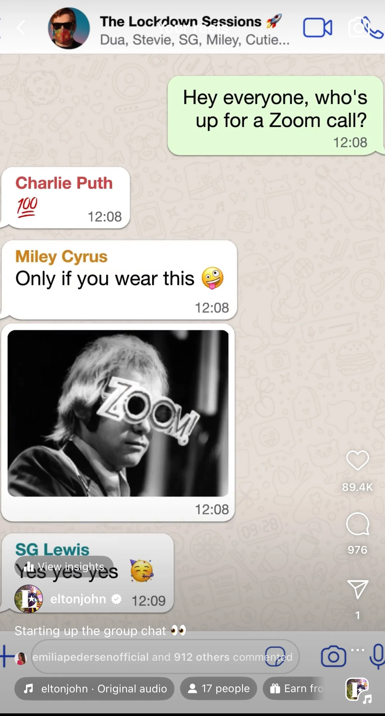 The ultimate Zoom started with the ultimate group chat with Elton inviting his fellow collaborators to the call. The tease garnered a bunch of attention with over 1 million people watching and thousands of comments speculating what was coming.
